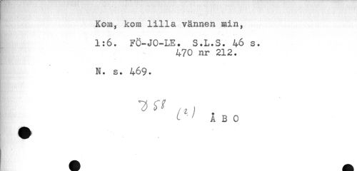 //// . ^ . _ S ... i'.. . //// Kom, kom lilla vännen min, //// 1:6. FÖ-JO-LE. S.L.S. 46 s. //// 470 nr 212. //// * ' //// N. s. 469. //// <L ^ ÅBO //// n V //// H H ^ " ////