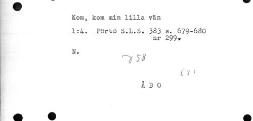 //// Kom, kom min lilla vän //// 1:4. Pörtö S.L.S. 333 s. 679-630 //// nr 299* //// r? ^ //// ÅBO //// *! ////