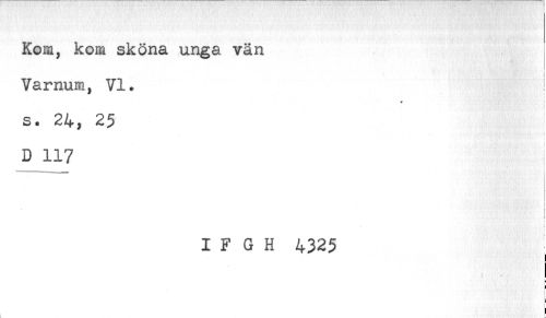 //// Kom, kom sköna unga vän //// < //// Varnum, VI. ! //// s. 24, 25 //// t //// < //// D 117 //// i //// ; //// ———— . //// i //// ! //// i //// I F G H 4325 //// * //// * //// ! //// ) ////