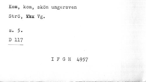 //// Kom, kom, skön ungersven //// Strö, Xkx Vg. //// 5. //// D 117 //// \ //// I F G H 4957 ////