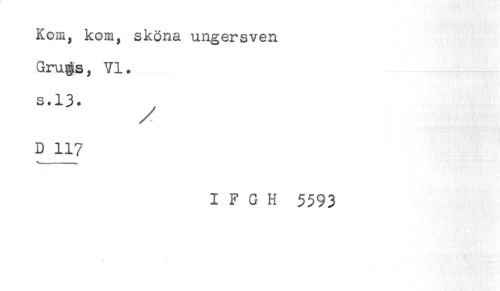 //// Kom, kom, sköna ungersven //// Grugs, VI. //// s.13. ^ //// D 117 //// I F G H 5593 ////