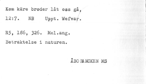 //// Kom käre broder låt oss gå, //// 12:7. NB Uppt. Wefvar. i //// R5, 136, 326. Mel.ang. //// t //// Betraktelse i naturen. //// ÅBOmNCKENMS j ////