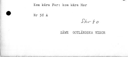 //// Kom kära Far: kom kära Mor //// ^ Nr 58 A //// SÄWE GOTLÄNDSKA VISOR //// S* '' ' " - ////