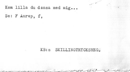 //// Kom lilla du dansa med mig... //// Se: F Anrep, f, //// KB:s SKILLINGTRYCKSREG^ //// < ////