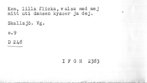 //// Kom, lilla flicka, valsa med mej //// mitt uti dansen kysser ja dej. //// Skallsjö. Vg. //// s.9 //// D 243 //// i*—-ir,nm< //// I F G H 2333 //// ^—,________-_________________________——---------—.____._____- ^—----—.——^---.—--—----------——... .-------------——-,—. ______ ////