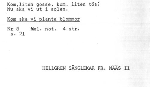 //// i^kJH! y -L JL U C i i ^ tJ ^ ^ C y J^^IM y -L JL t, tJii =) * //// Nu ska vi ut i solen. //// t //// i //// t //// Kom ska vi planta blommor //// t //// Nr 8 Mel. not. 4 str. //// s. 21 //// < //// < //// HELLGREN SÅNGLEKAR FR. NÄÄS II ////