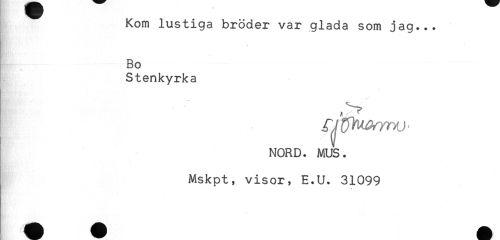 //// Kom lustiga bröder var glada som jag... //// Bo //// Stenkyrka //// rv yhwvxJ - //// NORD. MUS. //// Mskpt, visor, E.U. 31099 ////