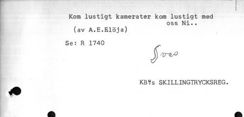 //// . - f //// Kom lustigt kamerater kom lustigt med //// oss Ni.. //// (av A.E.Elöja) //// Se: R 1740 //// I //// KB^s SKILLINGTRYCKSREG. ////
