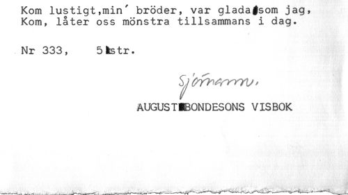 //// ^JJ- J- , vaj. ^ JL a ^ a t? ja^, //// Kom, låter oss mönstra tillsammans i dag. //// / //// Nr 333, 5kstr. //// AUGUSIHBONDESONS VISBOK ////