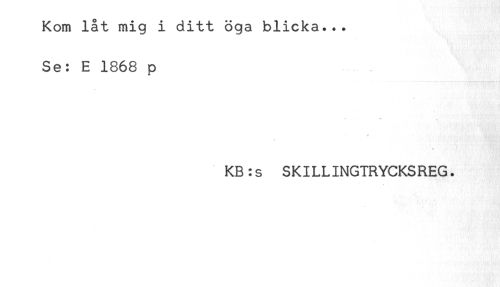 //// Kom låt mig i ditt öga blicka... //// Se: E 1868 p //// — *.- //// KB:s SKILLINGTRYCKSREG. ////