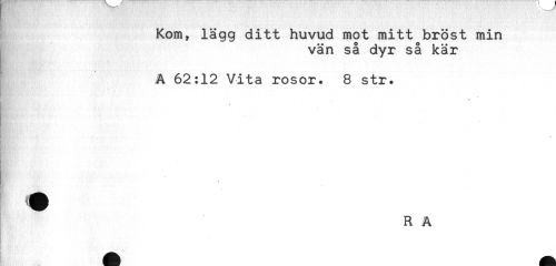 //// Kom, lägg ditt huvud mot mitt bröst min //// vän så dyr så kär //// ^ 1 . t- - //// A 62:12 Vita rosor. 8 str. //// < //// R A ////