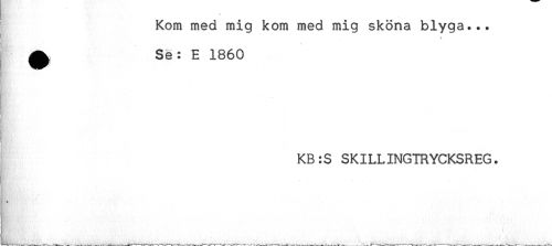 //// Kom med mig kom med mig sköna blyga... //// § //// ^ Se: E 1860 //// 4 //// KB:S SKILLINGTRYCKSREG. //// * //// L ^^^^ . ........... ////