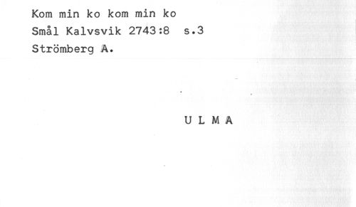 //// Kom mm ko kom mm ko //// Smal Kalvsvik 2743:8 s.3 //// Strömberg A. //// * //// * //// U L M A ////