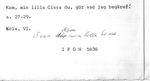 //// Kom, min lilla Cissa du, gör vad jag begäret //// s. 27-29. //// Köla, VI. ^^ //// I F G H 5838 ////
