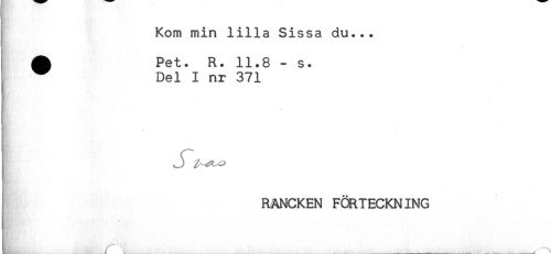 //// Kom min lilla Sissa du... //// ! ^ Pet. R. 11.8 - s. //// ! ^ Del I nr 371 //// C //// [ RANCKEN FÖRTECKNING ////