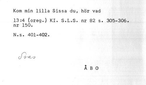 //// Kom min lilla Sissa du, hör vad //// 13:4 (oreg.) Kl. S.L.S. nr 82 s. 305-306. //// nr 150. //// N.s. 401-402. ////