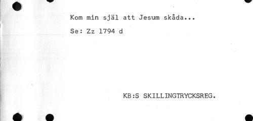 //// Kom min själ att Jesum skåda... //// Se: Zz 1794 d //// * //// * //// * //// KB:S SKILLINGTRYCKSREG. ////