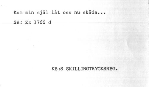 //// Kom min själ låt oss nu skåda... ! //// ! //// Sé: Zz 1766 d //// l //// < //// < //// i //// ) //// KB:S SKILLINGTRYCKSREG. //// - ////