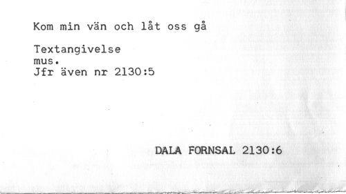 //// Kom min vän och låt oss gå //// Textangivelse //// mus. //// Jfr även nr 2130:5 //// < * //// * //// DALA FORNSAL 2130:6 ////