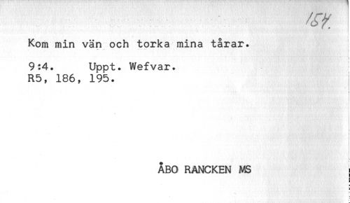 //// Kom min vän och torka mina tårar. ! //// ^ ' . ..... . ' . '', .'' <^ ! //// . t //// 9:4. Uppt. Wefvar. ! //// R5, 186, 195. //// L //// t //// ÅBO RANCKEN MS ; //// ä //// a //// ! ////
