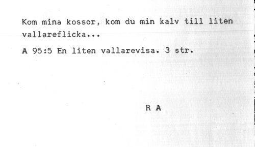 //// t //// j //// Kom mina kossor, kom du min kalv till liten //// vallareflicka... //// A 95:5 En liten vallarevisa. 3 str. //// i //// ' W * i //// ! //// ! //// . - ' t //// & //// t //// * //// R A //// ! //// t' //// < ////