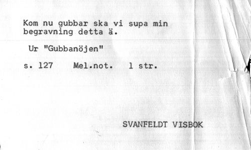 //// Kom nu gubbar ska vi supa min //// begravning detta ä. ' U //// v ....... //// Ur "Gubbanöjen" //// s. 127 Mel. no t. 1 str. \ )# //// /HT //// v 1 //// y . ! 1 //// - //// i * ' <1 it % //// ! nBRH^! //// ! t //// SVANFELDT VISBOK //// i t //// ' . j \ //// ! ////