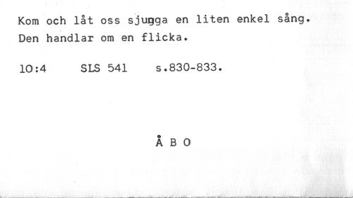 //// Kom och låt oss sjugga en liten enkel sång. //// Den handlar om en flicka. //// 10:4 SLS 541 s.830-833. //// ÅBO ////