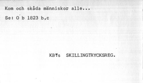 //// Kom och skåda människor alle... , //// Se: O b 1823 b,c //// ! //// * //// i //// '' f //// ! //// I //// KBfs SKILLINGTRYCKSREG. ////