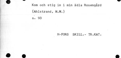//// Kom och stig in i min ädla Rosengård //// (Ahlstrand, M.W.) //// - //// * //// s. 93 //// H-FORS SKILL.- TR.KAT. //// * //// '.'i';. //// t ////