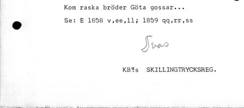 //// Rom raska broaer bota gossar... //// < //// ^ Se: E 1858 v,ee,ll; 1859 qq,rr,ss //// F!.''' ' //// KB'is SKILLINGTRYCKSREG. ////