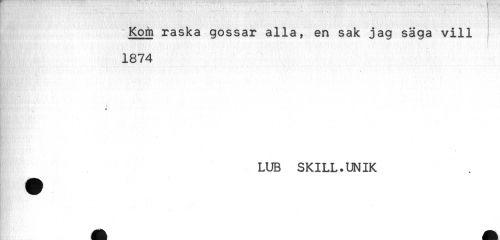 //// Kom raska gossar alla/ en sak jag säga vill //// 1874 //// fy' ' //// * //// LUB SKILL.UNIK ////