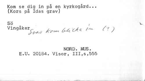 //// Kom se dig in på en kyrkogård... //// (Kors på Idas grav) //// Sö \ //// NORD. MUS. //// E.U. 20184. Visor, III,s,555 ////