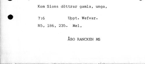 //// Kom Sions döttrar gamla, unga, //// ^ 7:6 Uppt. Wefvar. //// R5, 186, 235. Mel, //// A //// ÅBO RANCKEN MS //// ! //// 7 ' //// L-t . . —^ --1***"'* -*-— —--^ v---- -t"-—. — — -Y—.t^ -**'--*** ***--**-—. . -. - . . — .. . . . ^ r——---- .r— . . ////