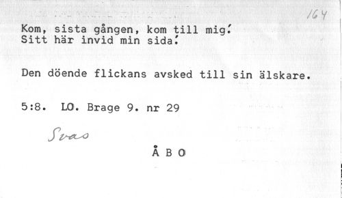 //// - -'* - ' ..... -..... ^ . t / y //// Kom, sista gången, kom till migf //// Sitt här invid min sidaJ //// ! //// Den döende flickans avsked till sin älskare. //// *-* <* * //// 5:8. LO. Brage 9. nr 29 //// ÅBO //// ! //// i //// B //// ä ////