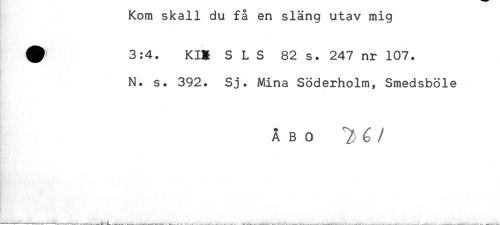 //// Rom skall du ta en slang utav mig //// 3:4. Kl* S L S 82 s. 247 nr 107. //// N. s. 392. Sj. Mina Söderholm, Smedsböle //// ÅBO 7^/ ////
