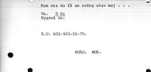 //// Kom ska du få en sväng utav mej . . . //// Vb. D 61 //// Bygdeå sn. //// E.U. 602-983-28-75. //// ^ NORD. MUS. //// n- i ( ////