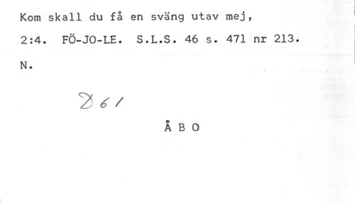 //// Kom skall du få en sväng utav mej, ' //// ! //// < //// 2:4. FÖ-JO-LE. S.L.S. 46 s. 471 nr 213. //// .. . . , . //// N. //// * ** - . ^ . ^ j //// ÅBO ////
