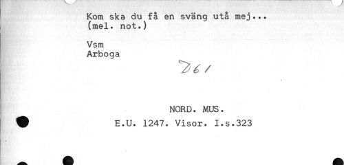 //// Kom ska du få en sväng utå mej... //// (mel. not.) //// Hwj/fi ' * ''' //// ) //// Vsm //// Arboga //// # //// NORD. MUS. //// # E.U. 1247. Visor. I.s.323 ////