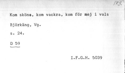 //// Kom sköna, kom vackra, kom för mej i vals //// Björkäng, Vg. //// ! //// s. 24. //// < //// i //// D 59 //// *< ... "" ' //// ! //// i //// . //// i //// < //// I.F.G.H. 5039 ////