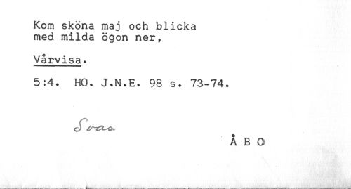 //// Kom sköna maj och blicka //// med milda ögon ner, //// Vårvisa. //// 5:4. HO. J.N.E. 98 s. 73-74. //// ÅBO //// . ... ' * ////