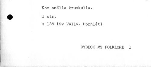 //// Kom snälla kruskulla. //// ^ 1 str. //// s 135 (Sv Vallv. Hornlåt) //// DYBECK MS FOLKLORE 1 ////