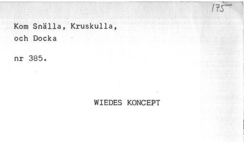 //// f rj //// < //// Kom Snälla, Kruskulla, //// och Docka //// nr 385. //// t //// - //// WIEDES KONCEPT //// i ////
