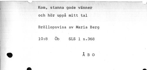 //// Kom, stanna gode vänner //// och hör uppå mitt tal //// Bröllopsvisa av Maria Berg //// 10:8 Öb SLS 1 s.368 //// !-" , ////