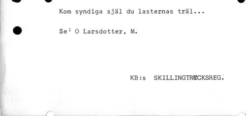 //// Kom syndiga själ du lastemas träl... //// ^ Se* O Larsdotter, M. //// KB:s SKILLINGTRECKSREG. ////