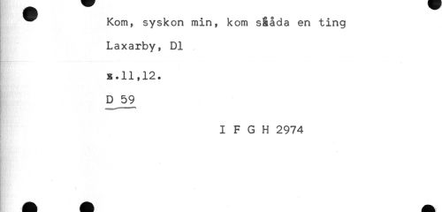 //// ^ Kom, syskon min, kom säåda en ting //// Laxarby, Dl //// s.11,12. //// D^ 59 //// I F G H 2974 //// - ////