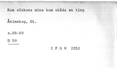 //// Kom söskona mina kom skåda en ting //// Ånimskog, Dl. ! //// <* //// s.88-89 //// - //// D 59 //// I F G H 2352 ////