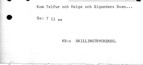 //// Kom Telfur och Helge och Sigurders Sven... //// * //// # Se: T 11 gg //// KB:s SKILLINGTRYCKSREG. ////