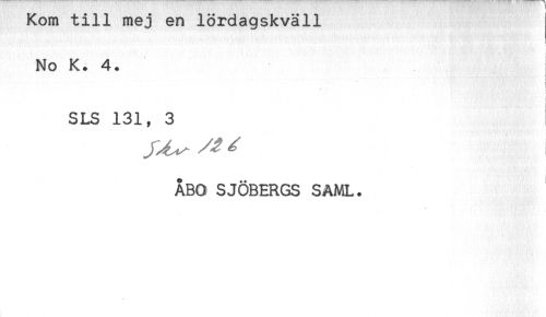 //// Rom till mej en iordagsKvail //// No K. 4. //// SLS 131, 3 //// ÅBO SJÖBERGS SAML. ////