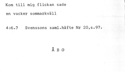 //// Kom till mig tlickan saae //// < //// en vacker sommarkväll //// 4:6.? Svenssons saml.häfte Nr 20,s.97. //// * . . * * * * //// ÅBO ////