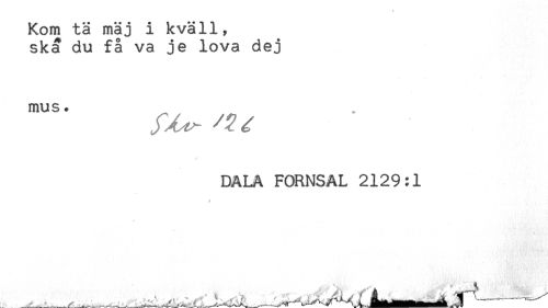 //// Kom tä mäj i kväll? //// ska du få va je lova dej //// mus. //// DALA FORNSAL 2129:1 ////